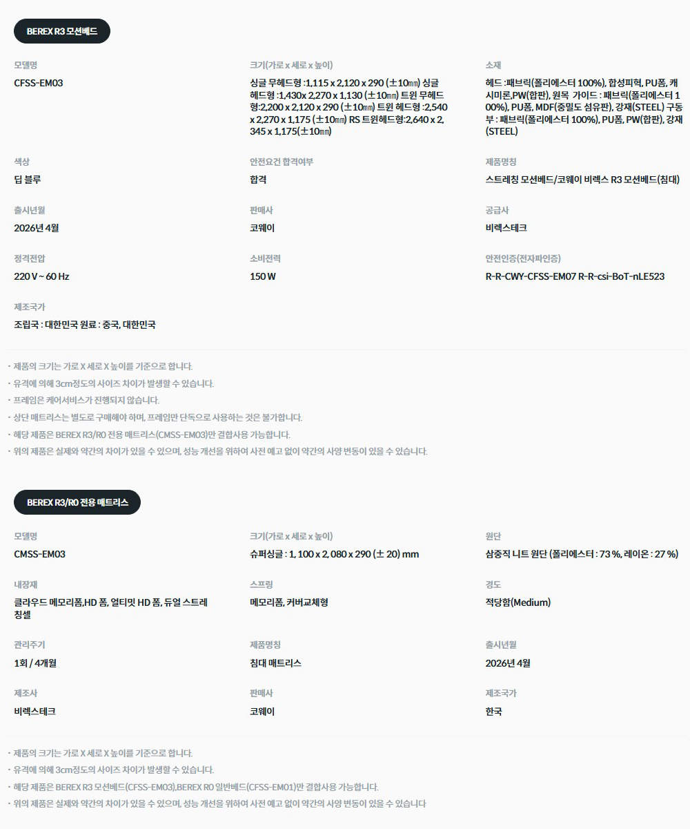 BEREX R시리즈 R3 모션베드(헤드없음) CFSS-EM03 CMSS-EM03