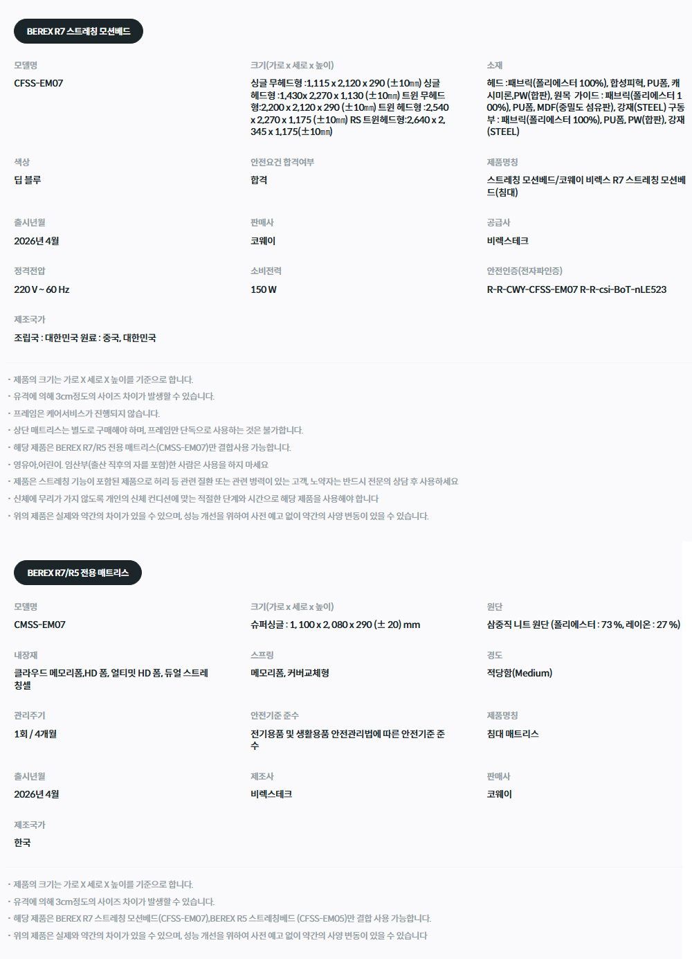 BEREX R시리즈 R7 스트레칭 모션베드(헤드있음) CFSS-EM07 CMSS-EM07
